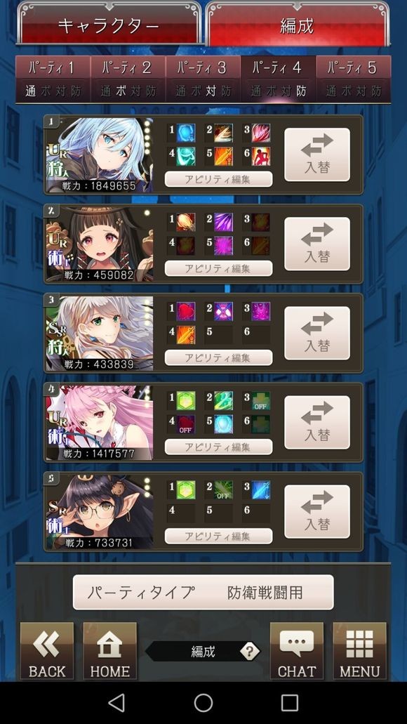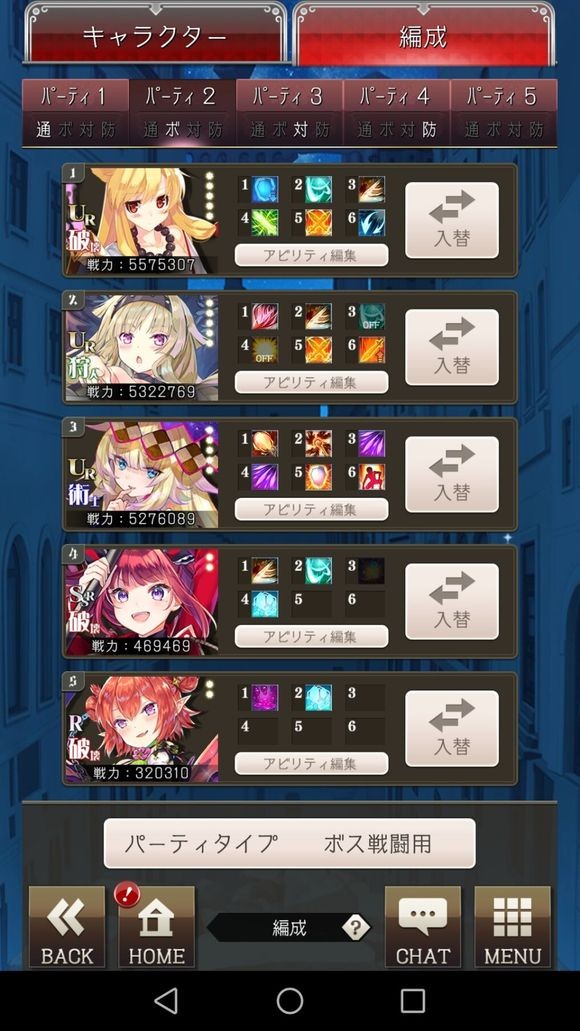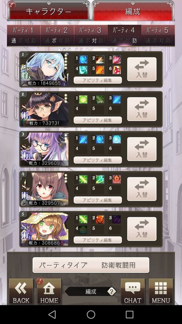 下一个阶段玩家大概该是80级左右,身上装备穿上了sr和ssr但是离ur等级还差一些。首先这个sr和ssr是可以喂的,最后不用了装备继承完分解就好,太阳晶石和装备碎片会完全返还,但是铜货不会返还。这时可能打推荐等级比自身等级高的图可能会遇到一些困难,我们可以灵活运用伤害类debuff火伤中毒病気来取巧过图(火伤中毒都是每回合5%伤害,病気是x个回合后20%,而且就算最后己方五人死亡只要对面掉血掉死也算赢)以及妨害类debuff气绝混乱睡眠来碰运气,当然还有闪避嘲讽攻防增减的常规打法,不过战力差太多不一定能赢。挂机的话如果不能做到120回/1h那么就别打最高的图,先打可以每小时打满的。