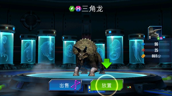每一只恐龙的诞生都必须经历一个孵化过程,游戏为玩家免费提供了一个免费孵化器,玩家花费现金可解锁更多孵化器,更快培育恐龙。