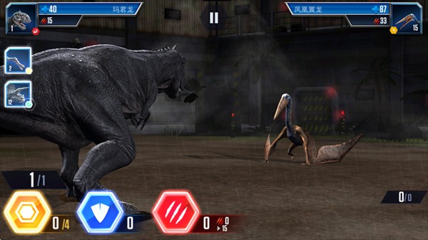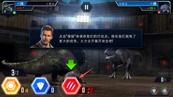 4、开战前为恐龙配好护盾、回血和攻击卡,速度高的恐龙可以先手攻击