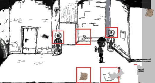 4、进去后捡起地上的两个球放在对应的位置,得到第二张纸和数字8、4;