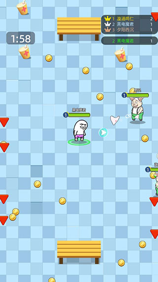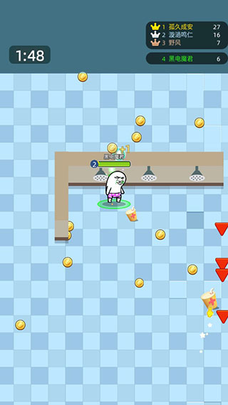 3、悄悄收集金币,防止被人群攻。