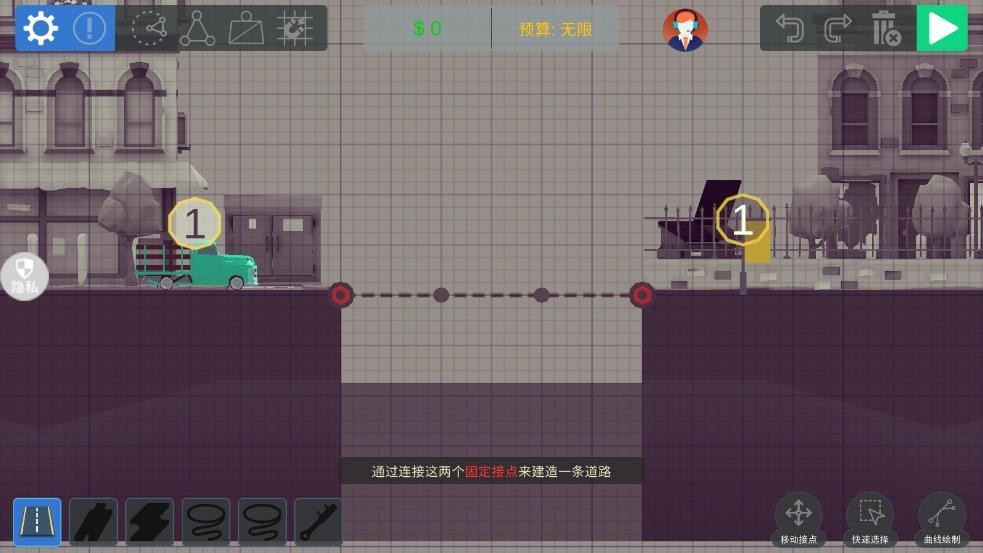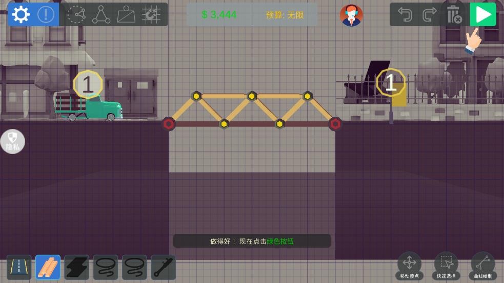 1.下载点击进入游戏,开始建造桥梁完成任务