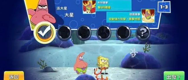 2、随着关卡的进行,玩家会在不同地图中解救海绵宝宝的朋友。获救的朋友将会在接下来的关卡中成为一起行动的伙伴,玩家可以在关卡开始以前选择伙伴,而这些伙伴都有各自的能力,像是派大星可以使用重击地板开启新地图,章鱼哥可以帮忙吸引锅铲或控制水母等等,玩家可以配合不同的场景选择适合的伙伴,或许会有意想不到的惊喜或更轻松的解决关卡喔!