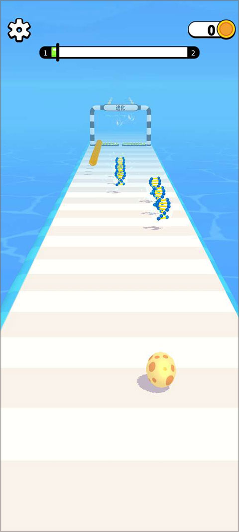 1、下载安装好疯狂怪兽蛋,带年纪开始游戏,你需要收集一路上散落的基因,闯过进化门可以进化。