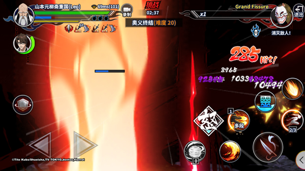 玩家们普遍感觉这个关卡很容易,其实Leo想告诉大家,是因为玩家们的操作连招使得boss无法落地或在保护后的最恰当时机继续第二轮,第三轮连招才使得boss无还手机会,这样就会显得这关很容易,但其实boss的伤害(尤其是20关)一点都不低,超级大神的蓝染或者斩月或者山本可以在秒秒种就跪了,所以宗旨就是一直连到boss被消灭就可以了,听朋友们说,破招可以增加伤害,我感觉好像是这样的,因为有时候我把boss打破招了,用了一个必杀,boss直接被消灭了,但是有时候就无法被直接带走,感兴趣的玩家可以再继续关注一下。