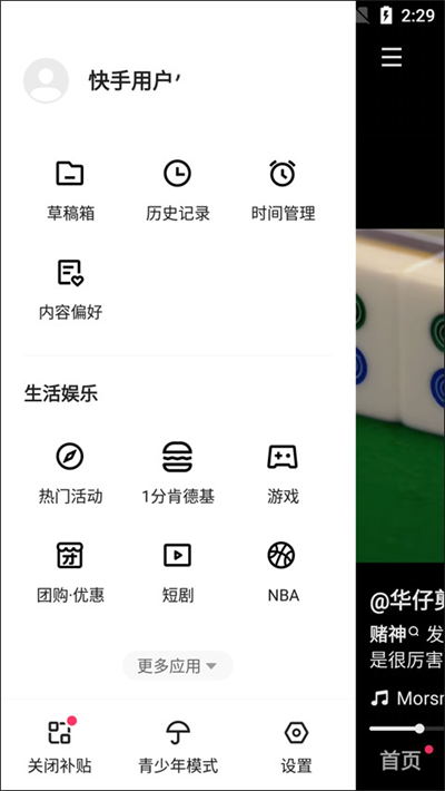 2、点击左上角的三杠,向下滑动,即可看到一个游戏的选项
