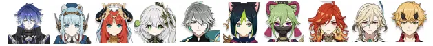 剧变反应角色:菲林斯、伊涅芙、艾尔海森、妮露、提纳里、纳西妲、久岐忍、卡维、玛薇卡、托马等。