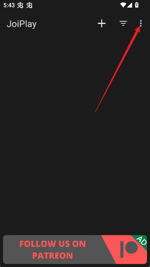 1、启动JoiPlay后,先点击主界面右上角的“三点图标”打开更多功能选项。