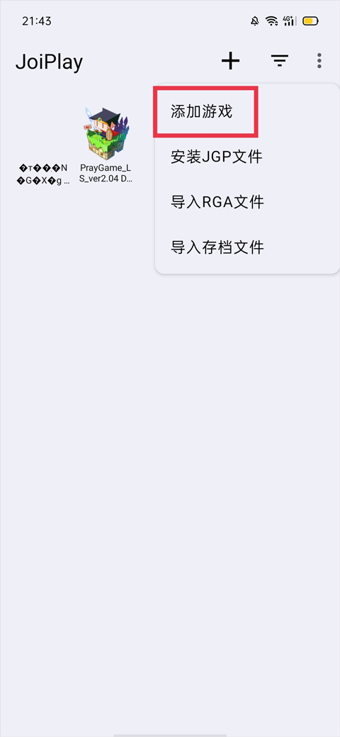 打开Joiplay主界面,点击右上角的“+”按钮进入添加流程。