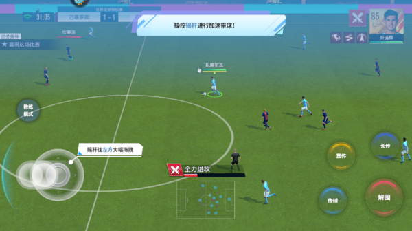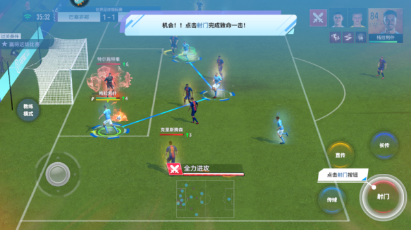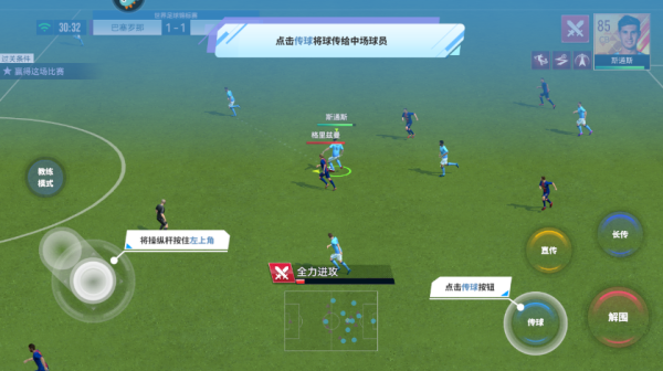 2、传球解析:根据操纵杆控制角色移动,点击传球进行;