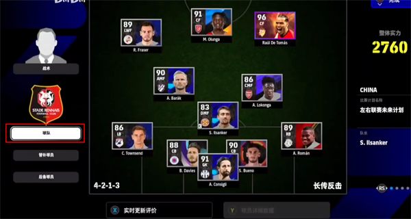 3、在游戏主页中,点击“比赛计划”,点击“球队”可以切换不同的战术以及对战术进行更改