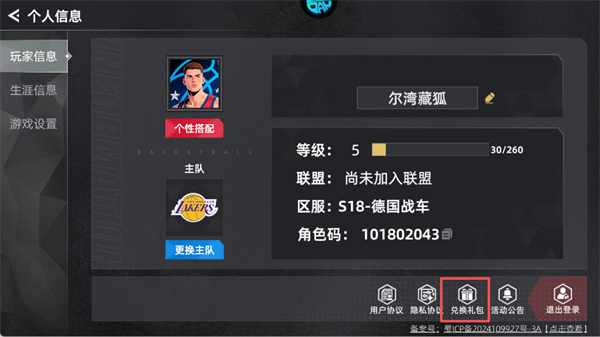 2、找到并点击"兑换礼包"选项。