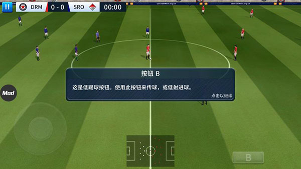 6、按钮B是低踢球按钮,可以使用该按钮来传球;