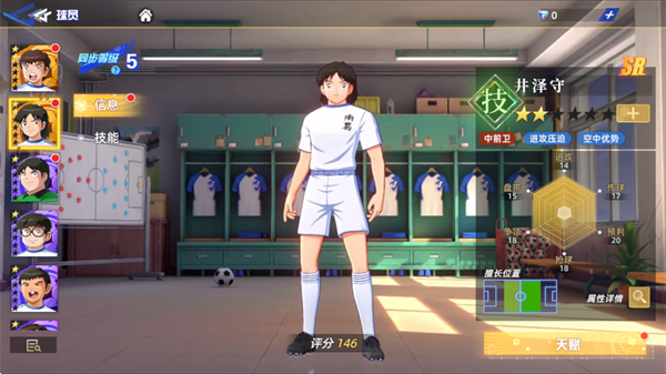 井泽守在场时,若我方任意球员在前场成功夺回球权时井泽守有50%几率增加6.3%