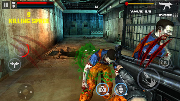 僵尸的射杀是有技巧,除了爆头以外,远处的僵尸使用点杀,近处则使用扫射,合理安排弹药消耗,才能安全通关。