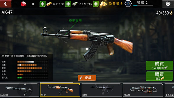 4、点击购买既可购买,还可以升级、购买弹药等等;