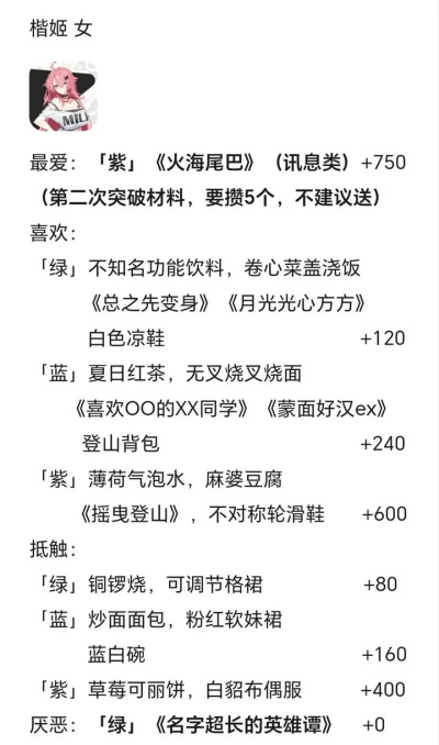 □厌恶的会拒收,不消耗但能解锁角色语音