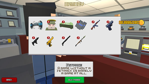 像素帮派是一款像素沙盒类射击闯关小游戏,该游戏在玩法上有点类似于罪恶都市,有着超高自由度,游戏内不仅为玩家提供超大卡通场景的地图,还加入了多种形态各异的小人和各种武器道具,在这里你可以自由建立帮派,发动战争策略,在大城市抢劫,成为帮派的大佬收取保护费。起初你的帮派规模并不会很大,这期间你需要去收集一定的装备和技能,通过不断的战斗来慢慢让其强大起来,最终成为这个城市的霸主。