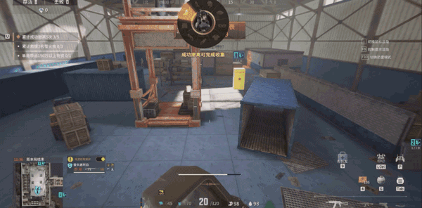 之后往前走,在写着新港制油厂牌子的前方,有一个集装箱,集装箱下面会有一个刷金的巡回箱,集装箱里面的办公包和保险箱,分别会出币子和镭钻物品!这也是整个右侧资源最集中的一个点,同时争夺也最为激烈!