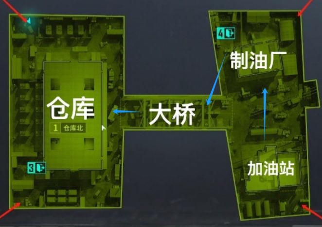 对峙港的出生点是四个角落随机分配,因此萤火虫要注意根据出生位置,快速找到适合的摸金点,并且每局常规撤离点都位于地图中自己出生点的对面,所以也要格外注意中间大桥区域的控制和争夺!