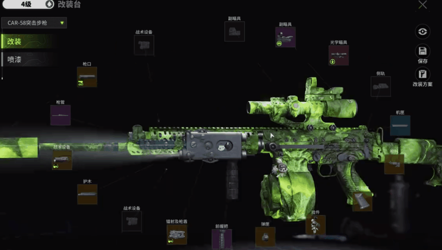 满改的推荐,搭配枪械是CAR-58~加装了镭射、红点,手电,枪械各方面的属性提升相对均衡~