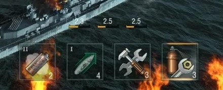 Tips:战舰的技能、修复工具都是有限定的使用次数,而且使用后都有较长的冷却时间。