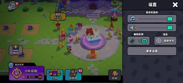 设置:这里可以设置当前游戏语言、音乐音效以及调整触控反馈提升自己的游戏体验