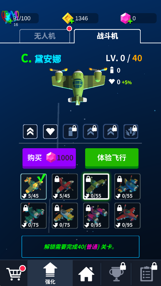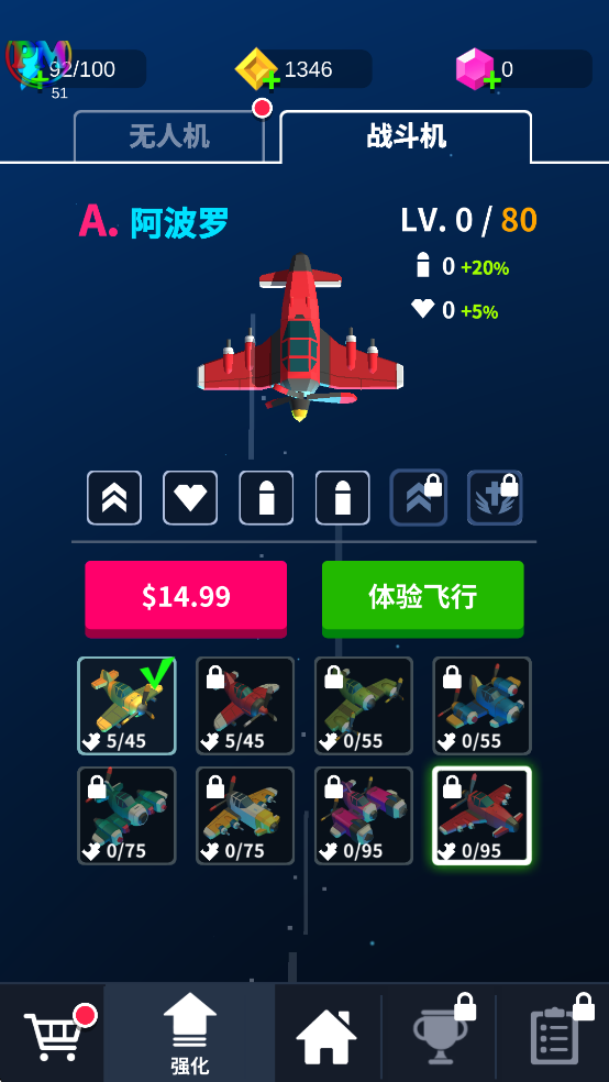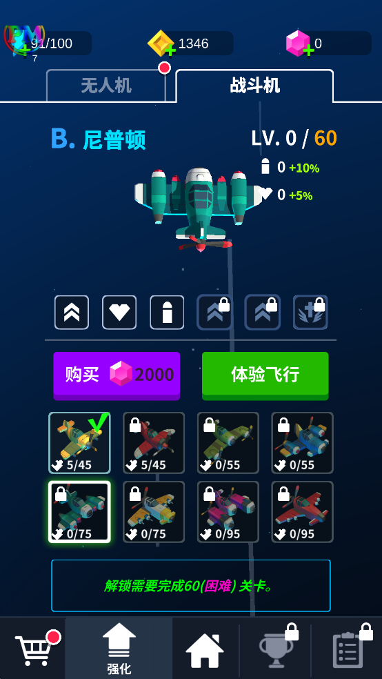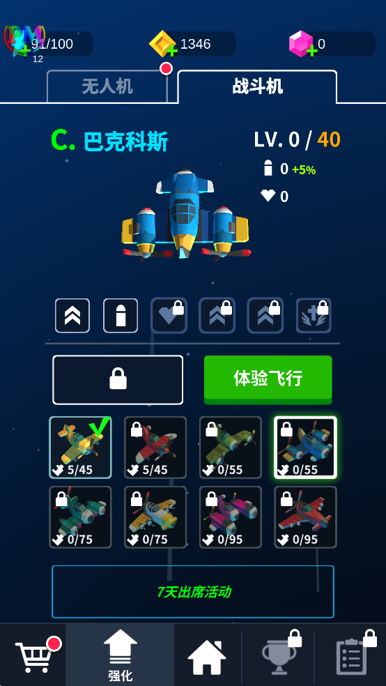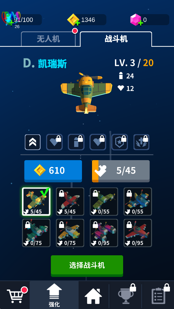 3、多种类型的机型可以供玩家选择,从操控,火力,炸弹等多个方面都具有差异,玩家可以根据自己习惯选择。