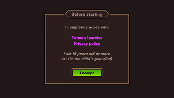 1、野性边境是一款非常有趣的游戏,它提供了许多精彩的玩法;首先,你需要打开野性边境游戏,首次进入时需要同意相关用户协议,选择【I accept】选项;