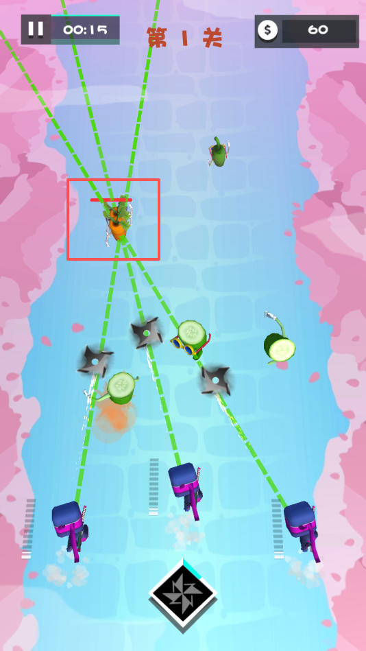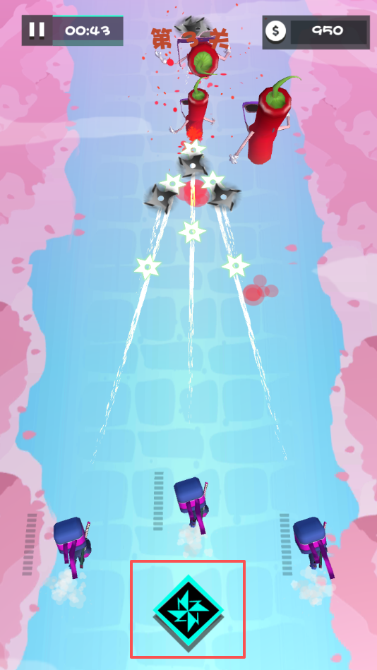 美食大作战是一款轻松解压的跑酷闯关手游。玩家将在关卡中操控3名忍者,不断攻击迎面的水果与蔬菜,通过点击、蓄力释放忍术以及施放奥义大招来完成挑战。每一关的Boss战让游戏节奏更加刺激,在轻松跑酷的基础上加入了“爽感输出”的反馈。游戏的养成系统简单明晰,通过金币即可升级忍者的基础攻击、强化手里剑技能,解锁更强大的奥义招式,带来明显的战力成长体验。