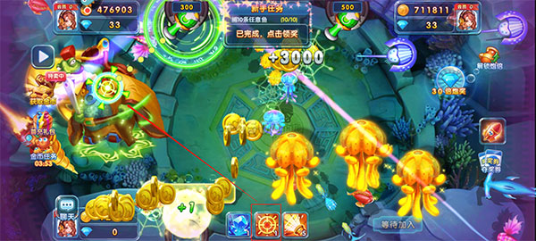 5、遇到BOSS时可以使用狂暴模式道具,能够让你的炮弹威力直升到数十倍,轻松抓捕大鱼。