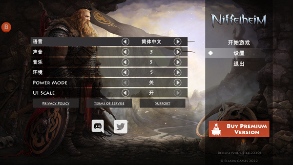 1、打开死人国维京生存最新版,在游戏开始前,可以点击设置对游戏内的环境质量、power mode等内容进行自定义选择;