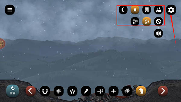 1、打开游戏后,刚开始游戏的时候点击重置可以选择城市背景,比如高楼大厦、夜晚、大桥等等;