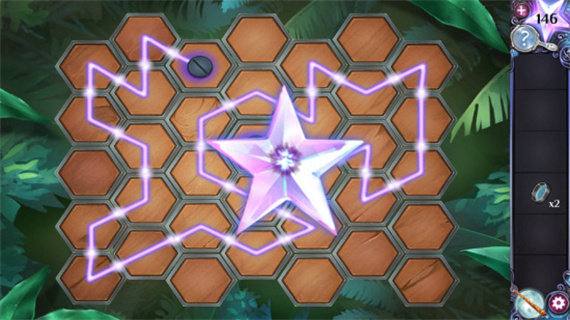 3、将鱼喂给洞穴爬行者,来到守卫室,将上面的六边形盾牌释放除锈咒语,当魔法电路出了问题之后,我们要旋转那些六边形让紫色的光柱连接成一条完整的线路。