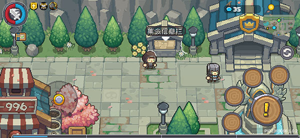 1、进入游戏后,玩家来到秋梨村的骑士团公会左侧,与集会信息栏互动。