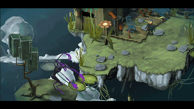 第5个记忆脑。创意花园中,锅屋左边还有幼苗洞,种植一个幼苗,可以看到可以供电的风车,放进一个绿色电池,为风车供电,吹走毒雾气收集第5个回忆。