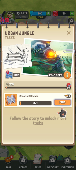 4、在任务界面中,跟随指引完成 “Construct Kitchen” 任务,解锁厨房设施以保障生存资源供应。