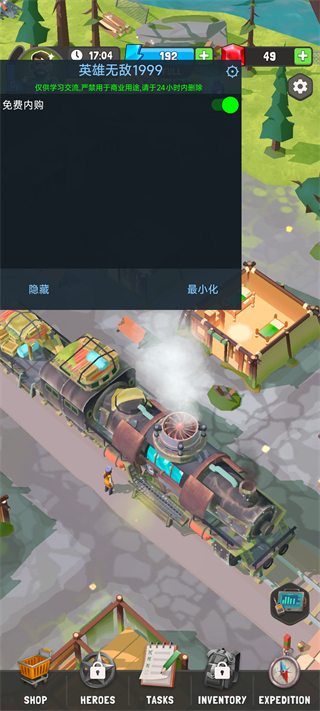 PS:希望列车破解版游戏内置菜单,可开启免费内购。