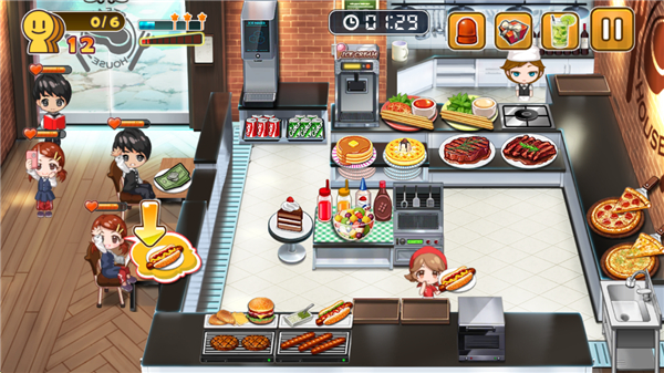 5、当食物完成后,点击成品将其送到对应的顾客手中。
