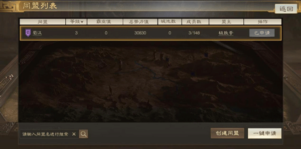 如果你还没有加入同盟的话,你可以选择加入别人的同盟,直接一键申请就可以了,或者自己创建同盟。