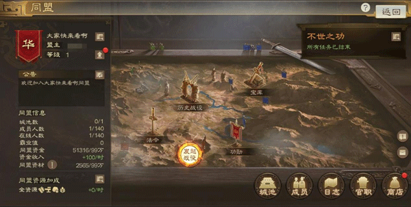 有了同盟之后,就可以拥有一群共同战斗的盟友了,同盟也有一些专属的功能,比如同盟商店,同盟占领的城池会获得更加多的资源,还有一些城战战役的玩法,同盟玩家可以组织自己的盟友去挑战战力,获得更多的资源,让更多玩家尽心尽力为整个同盟效力。