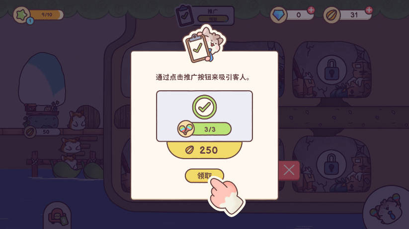 8、每完成一个任务,你都会获得丰厚奖励,用来扩展旅馆设施或购买新道具。
