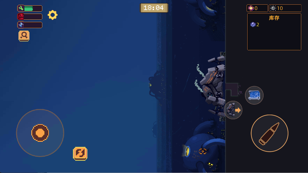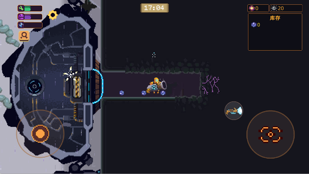 腿,跑起来才是这个游戏的开始,因为游戏地图自上而下一共7层,不同的层有不同的特殊矿产,玩家出生在中间,想要在有限的时间内通关是一定会上下来回跑的,另外,移速升满之后可以非常简单的躲避boss的触手攻击(这也就意味着 上跳 和 下跳 这两个升级变得可有可无)。