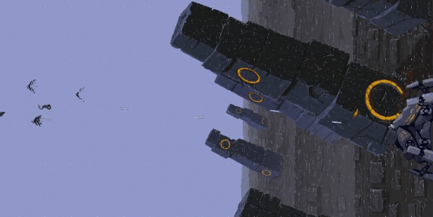 至于打boss,很明显我们需要攻击他肚子上那个蓝色小球,但是初始机枪抖的一批还得兼顾清怪,所以打boss其实要靠家里升级的那个 按1键使用的技能导弹 ,导弹会优先锁定高威胁目标。