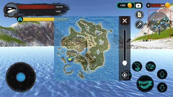 3、左边移动摇杆按钮可以操控虎鲸的行动,右边可以控制虎鲸的动作,比如喷水、跳跃、攻击等