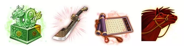 传国玉玺:当持有者在场时,被敌方选为目标的可能性更高,当持有者死亡时,己方全体部队攻防下降10%。