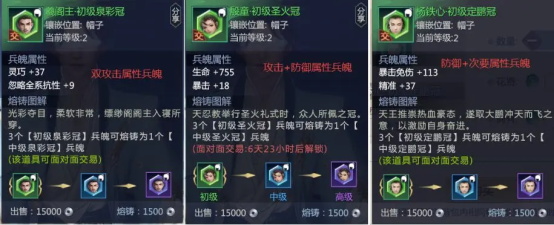 以帽子为例三个兵魄价格就是:曦阁主>殷童>杨铁心。