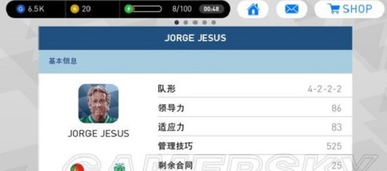 从第一天就要开始关注的栏目,因人而异、每天刷新,除了阵型外、最重要的就是跟球员身价息息相关的管理技巧值。