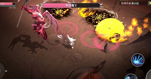 技能四:杀戮魔王飞向空中并持续释放陨石,地上会出现红圈,该阶段玩家无法攻击它,结束后锁定玩家进行飞扑。