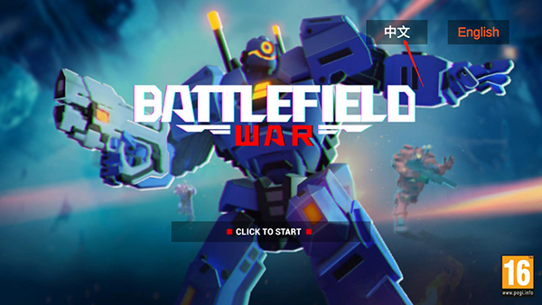 1、初次进入游戏,游戏默认为英文,可在右上角选择中文切换语言;